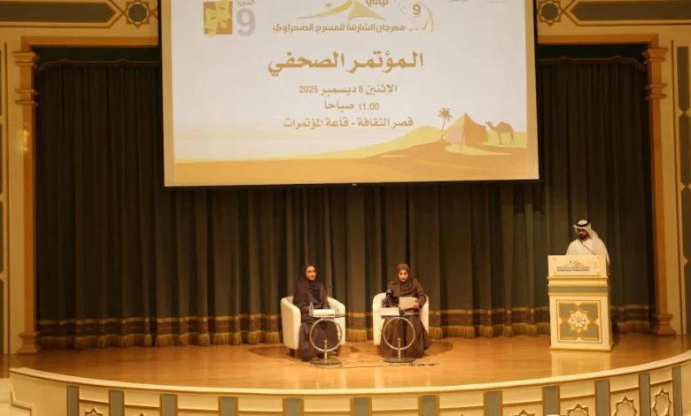 نظمت إدارة المسرح في دائرة الثقافة في الشارقة صباح الاثنين، بقصر الثقافة، مؤتمراً صحفياً للإعلان عن تفاصيل الدورة التاسعة من مهرجان الشارقة للمسرح الصحراوي، برعاية صاحب السمو الشيخ الدكتور سلطان بن محمد القاسمي عضو المجلس الأعلى حاكم الشارقة، وسط حضور تقدمه عبد الله العويس رئيس الدائرة، وأحمد بورحيمة مدير إدارة المسرح في الدائرة، وتحدث في المؤتمر كل من: مريم المعيني، رئيسة اللجنة الإعلامية للمهرجان، وسارة محكوم رئيسة لجنة الإشراف.