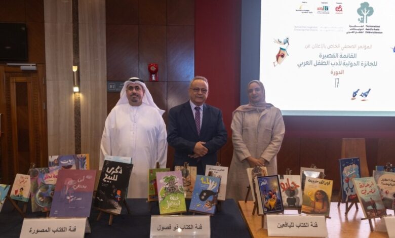 أعلنت الجائزة الدولية لأدب الطفل العربي، التي تقدمها شركة «إي آند» وينظمها المجلس الإماراتي لكتب اليافعين، قائمتها القصيرة للدورة السابعة عشرة، خلال مؤتمر صحفي استضافته مكتبة الإسكندرية صباح اليوم الأحد، حيث كشفت عن عناوين 25 كتاباً متأهلاً موزعاً على خمس فئات رئيسة، بواقع خمسة كتب لكل فئة. وتصدّرت دور النشر الأردنية القائمة بواقع 10 كتب، ومن ثم الدور المصرية بـ7 كتب، وتليها الإماراتية بـ4 كتب، واللبنانية بـ3 كتب، إضافة إلى دار نشر بحرينية بكتاب واحد.
