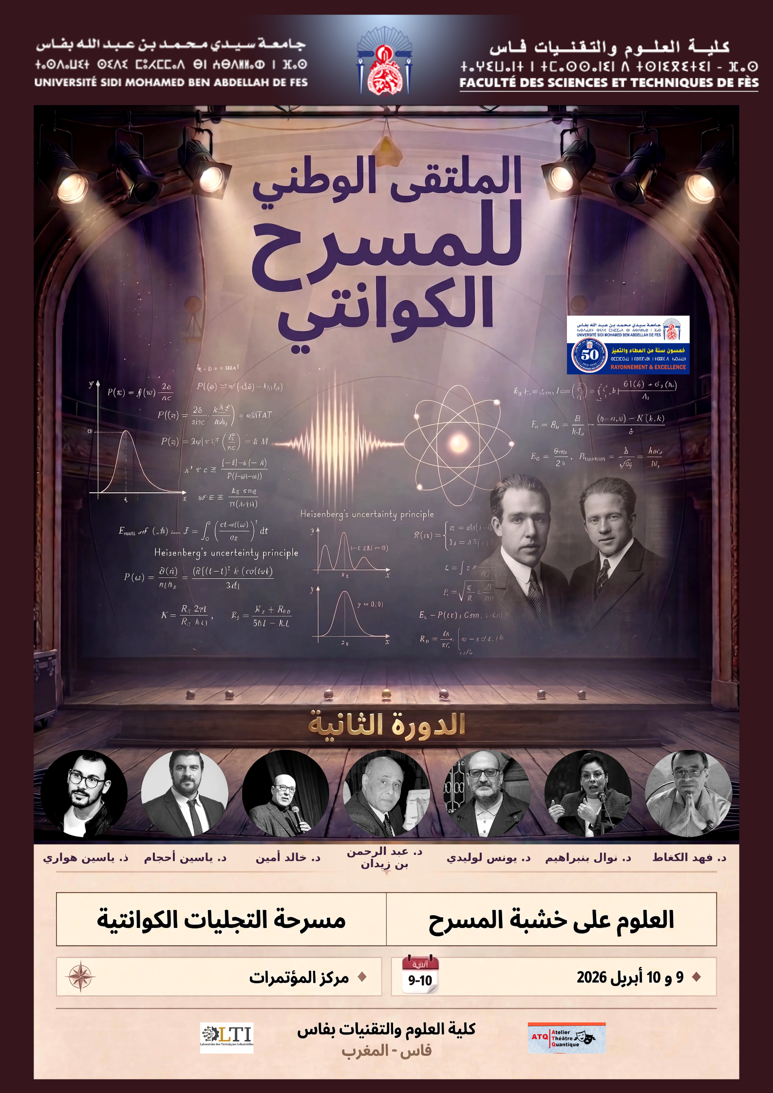 في سياق التحولات العميقة التي تعرفها العلاقة بين العلم والفنون، وما تتيحه المفاهيم العلمية المعاصرة من إمكانات جديدة للتفكير الجمالي والدرامي، تنظم كلية العلوم والتقنيات بفاس – جامعة سيدي محمد بن عبد الله الدورة الثانية من “الملتقى الوطني للمسرح الكوانتي” Quantum Theatre 2، يومي 9 و 10 أبريل 2026 بمركز المؤتمرات بالكلية.