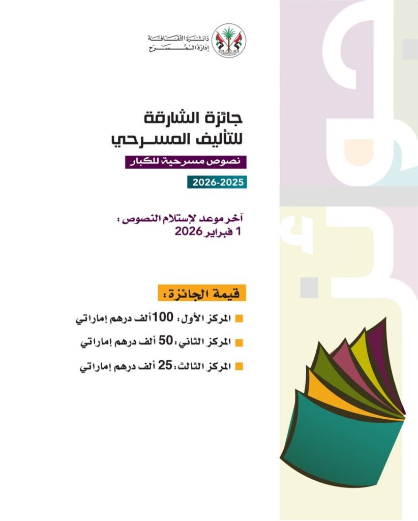 جائزة الشارقة للتأليف المسرحي – نصوص مسرحية للكبار 2025-2026