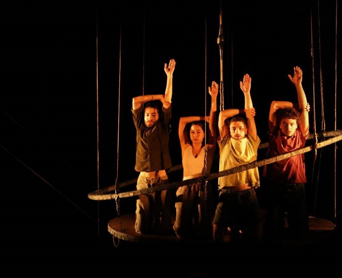 وخلق تكرار الحركات وتبادل الأدوار بين المؤدين إحساسا بالدائرة الزمنية المغلقة التي تحاول الأجساد كسرها بالوثب أو التعلق بالحبال، فيما يشبه محاولة لاستعادة الاتزان بعد كل سقوط.