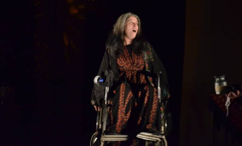 “فاطمة” في مسرحية غنام غنام تقاوم بمقعد متحرك