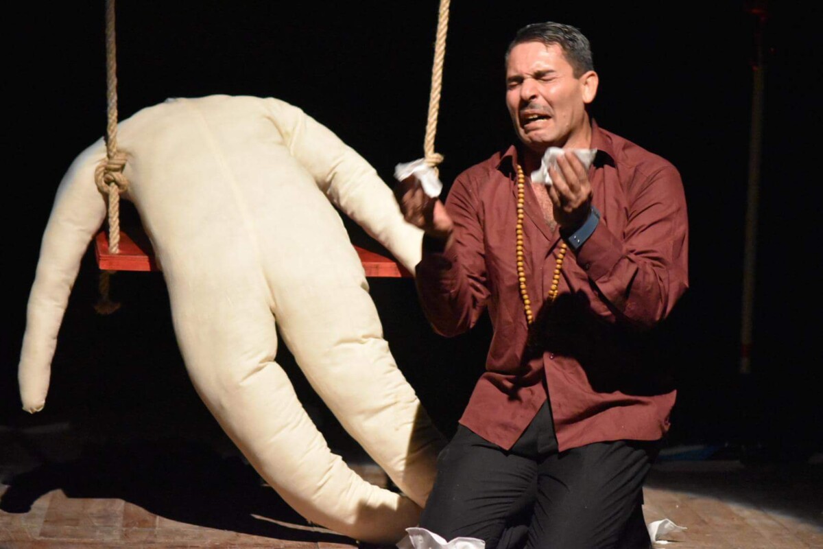 3- حكاية ما يرويها ممثل وما أن يصل نصفها نفاجأ بممثل أخر مختلف شكلاً واداءً في الجسم يكمل الحكاية والنفس وفي بعض سياقات البنية المضمونية والجمالية للحكاية.