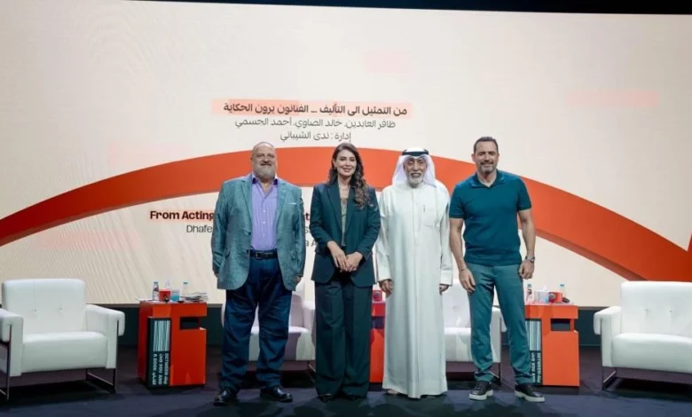 اصطحب ثلاثة من نجوم الفن العربي، خالد الصاوي وأحمد الجسمي وظافر عابدين، جمهور معرض الشارقة الدولي للكتاب في رحلة فنية وثقافية، خلال جلسة حملت عنوان «من التمثيل إلى التأليف»، قدموا خلالها حواراً ثرياً امتزجت فيه التجربة بالمعرفة، وتحدثوا عن مسار الفنان حين ينتقل من الأداء أمام الكاميرا إلى صناعة الحكاية نفسها، وكيف يتحول التمثيل إلى بوابة نحو التأليف، حيث تُعاد صياغة الحياة بمنظور مختلف.