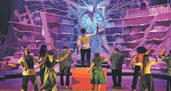التقط المخرج/ المعد قصة الكاتب الانجليزى المعاصر مات هيج «مكتبة منتصف الليل» ليقدم فرضية درامية تقوم على فكرة طرح الأسئلة حول اختيارات الإنسان ومدى رضاه عنها إو إحساسه بأهميتها وقيمتها وهل يمكن أن يكتشف فى لحظة ما أن حياته التى يراها سلسلة من حلقات مسلسلة من الفشل المتكرر، لها قيمتها فى حياة شخص آخر؟ وبناء عليه نرى بطلة العمل نورا تختار الانتحار فى لحظة يأس، ولكنها تتعلق بين الحياة والموت فتعيش حياة موازية فى عالم فانتازى ليس فيه سوى رجل (مستر جراي) ومكتبة ــ صممها ببراعة سعد الدين على ــ متفرعة من شجرة وارفة ومتجذرة فى الأرض، تتوسطها ساعة عملاقة عقاربها ثابتة على الساعة الثانية عشرة، لتعرف لاحقا أنها تسمى مكتبة منتصف الليل، فيحيلها مستر جراى إلى حيوات موازية من خلال كتب المكتبة، لتختبر أكثر قراراتها تكرارا فى الفشل وتحاول إعادة صياغتها حسبما يرضيها، وبالتالى يطرح لنا المخرج لوحات منفصلة متصلة لكل منها قوانينه وشبكة علاقاته التى لاتخرج عن معارف نورا ولكنها مصاغة بشكل مختلف واحتمالات متعددة..